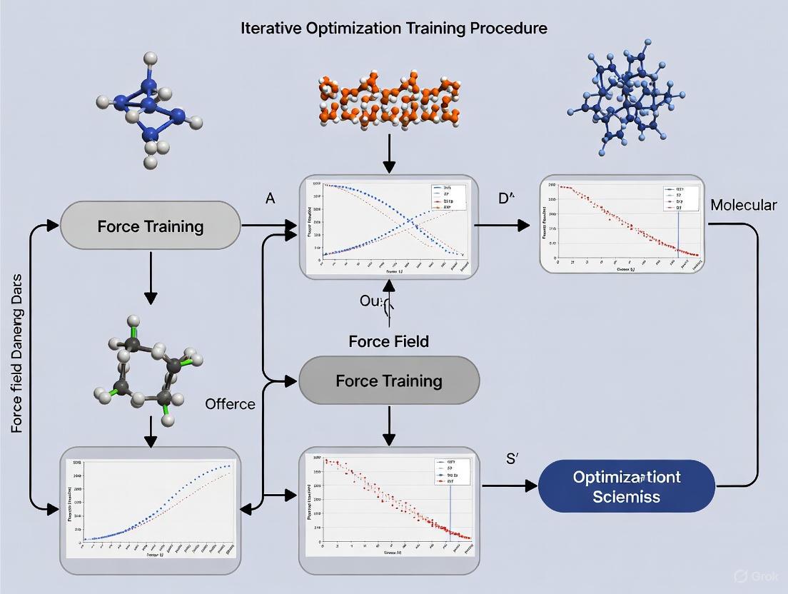 A powerful paradigm emerging in force field development is the iterative optimization procedure, which closes the loop between simulation and QM data generation to achieve self-consistent refinement. This framework directly addresses the challenge of creating accurate and generalizable force fields.